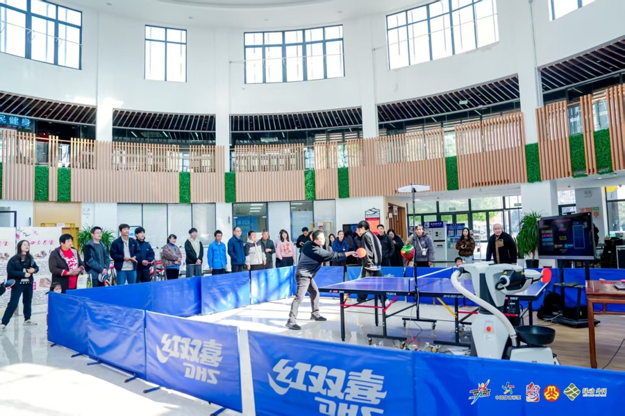 “啪!砰!”清脆的击球声此起彼伏。在智能乒乓球比赛(外冈站),企业职工与社区居民踊跃参与,在与庞伯特乒乓球机器人的对战中,感受科技与国球结合的独特魅力。