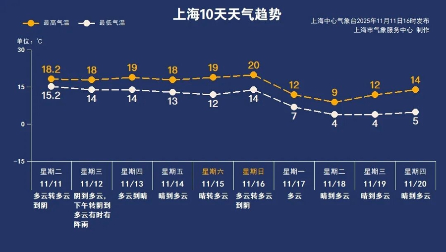 周四起晴好接棒:周四开始转晴或多云,又能晒到太阳,但要注意受冷空气、台风外围环流影响,周四有一次大风过程,陆地最大阵风6级,沿江沿海地区更大,骑车、户外散步要防风;本周气温稳定:最低12~14℃,最高18~20℃,早晚凉飕飕,白天暖洋洋,“洋葱穿衣法”刚好派上用场;下周一二强降温暴击:下周一前后强冷空气到货,周二气温直接跌到4~9℃,体感从秋天秒切冬天,厚外套、毛衣甚至薄羽绒服都得翻出来,别冻着!
