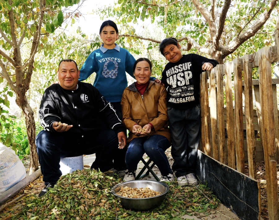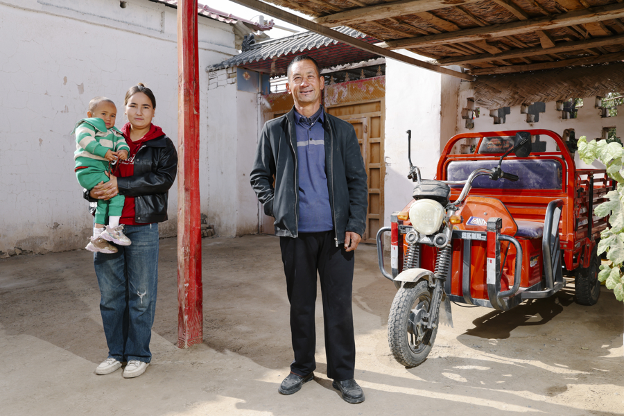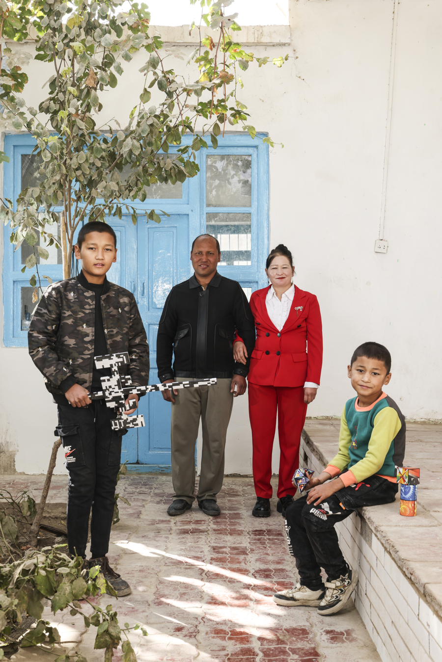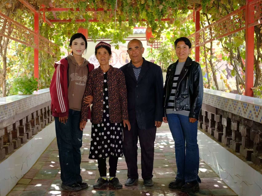 图为莎车县乌达力克镇热瓦特吾斯塘(16)村的艾山·巴拉提一家