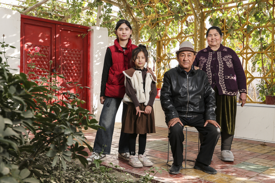 图为莎车县阿热勒乡苏盖提力克(3)村的伊比·麦谢热普一家