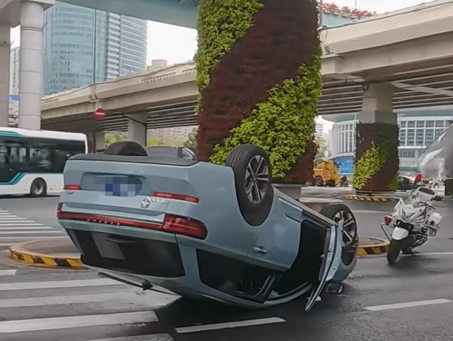 昨天(10.31)早高峰时段,徐汇区中山西路漕溪北路,一辆SUV擦撞路口桥墩后翻车。事故未造成人员伤亡。